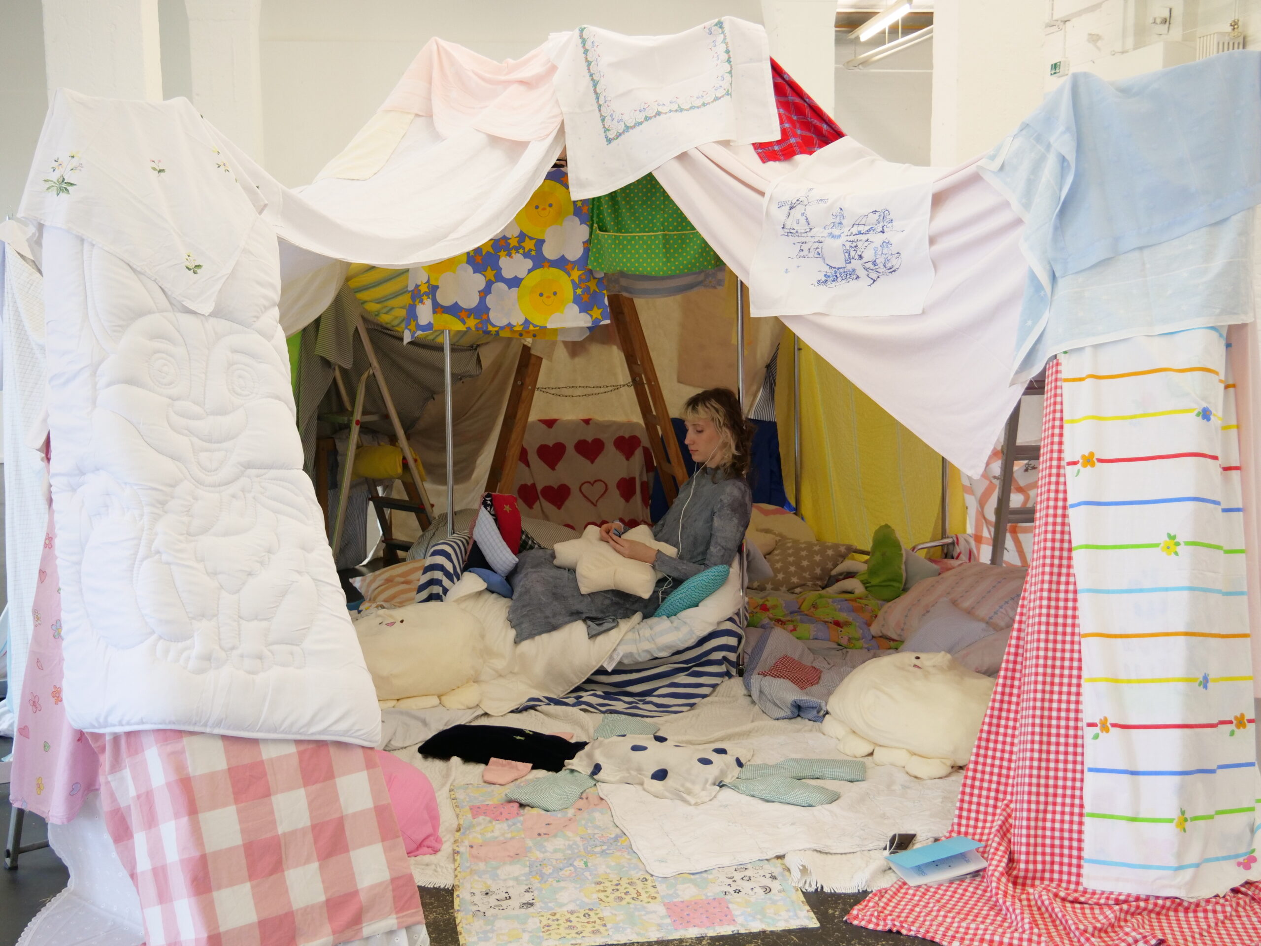 Wir konnten Sascia für unsere Ausstellung soft intentions (2025) gewinnen. Mit ihrem Soft Manifesto for Caring Infrastructures, das in ihrer Publikation Caring Infrastructures, Transforming the Arts Through Feminist Curating (2024) enthalten ist, war klar: Sie darf als Position in diesem Projekt nicht fehlen. Ihr Manifest ist weit mehr als eine programmatische Haltung – es gibt Impulse für Handlungen, die Geschlechtergerechtigkeit und Care in der Kunst real werden lassen können. Ursprünglich für einen klassischen Talk angefragt, entschied sich Sascia im Rahmen unserer Ausstellung für das Format einer Audio-Intervention: In They mistake our softness as weakness (2025) wurden auf Ipods alltägliche Geschichten von Frauen hörbar – die von Erschöpfung, (Fehl-)Geburt, Gewalt und stiller Solidarität erzählten. Softness nicht als Schwäche, sondern als eine andere Form von Stärke: ausdauernd, formbar, widerständig. In einem Notizbuch waren Besucher*innen eingeladen, ihre Gedanken zu notieren.