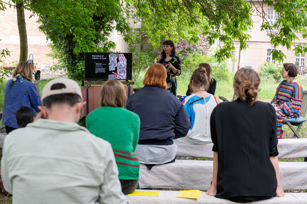 Mir wurde kürzlich eine ähnliche Frage gestellt, nämlich mit wem ich mein Buch Caring Infrastructures, Transforming the Arts Through Feminist Curating (2024) gerne besprechen würde. Da ich generell unter Decision Fatigue leide, habe ich anstatt einer Person einen ganzen Dinner Table vorgeschlagen mit allen tollen feministischen Denker*innen, die mein Buch und meine Arbeit beeinflusst haben: Sara Ahmed, Tania Bruguera, María Puig de la Bellacasa, Renee Cox, Céline Condorelli, Katy Deepwell, Silvia Federici, Nancy Fraser, Guerrilla Girls, Donna Haraway, Johanna Hedva, Hettie Judah, Elke Krasny, Sophie Lewis, Natalie Loveless, Chantal Mouffe, Linda Nochlin, Mierle Laderman Ukeles, Maura Reilly, Joan Tronto, Louise Toupin, und viele, viele mehr …