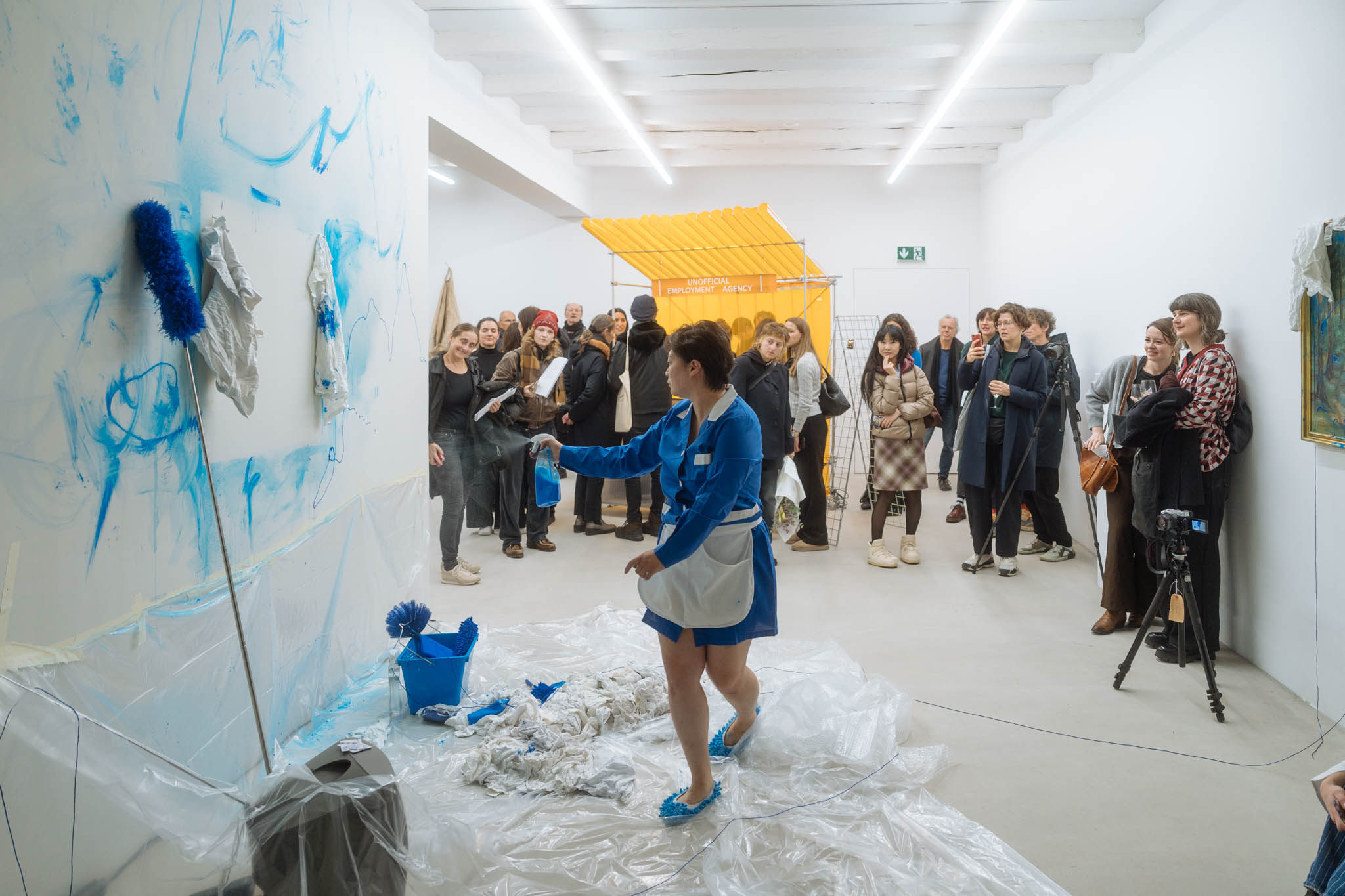 Performance von Gin Bahc bei der Eröffnung der Ausstellung “WORKWORKWORK”, co-kuratiert von Sascia Bailer und Karin Lustenberger; Foto © Alex Flores
